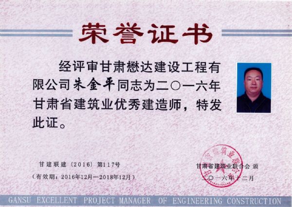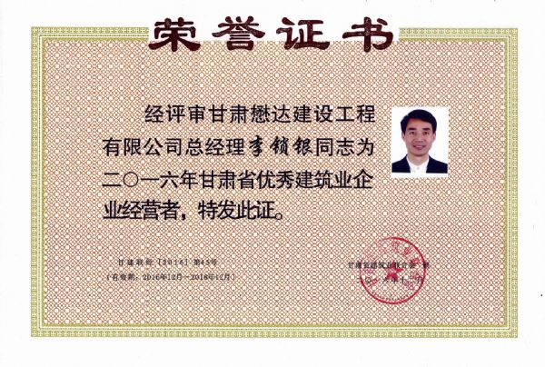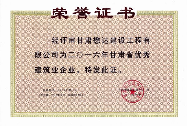 近日,甘肅懋達(dá)建設(shè)工程有限公司喜訊頻傳,在2016年甘肅省建筑業(yè)“三優(yōu)一文明”(優(yōu)秀建筑業(yè)企業(yè)、優(yōu)秀企業(yè)經(jīng)營(yíng)者、優(yōu)秀建造師和文明工地)活動(dòng)中,公司獲得了“2016年甘肅省優(yōu)秀建筑業(yè)企業(yè)”,董事長(zhǎng)李鎖銀獲得“2016年甘肅省優(yōu)秀建筑業(yè)企業(yè)經(jīng)營(yíng)者”,總工程師朱金平獲得“2016年甘肅省建筑業(yè)優(yōu)秀建造師”榮譽(yù)。