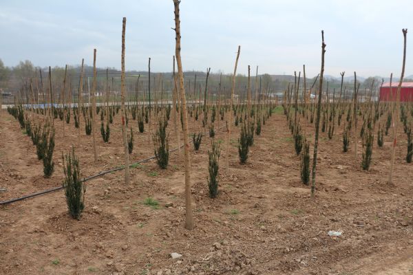 水陽鎮(zhèn)兩埡基地于2015年10月啟動(dòng)建設(shè),目前已流轉(zhuǎn)土地2000畝,完成投資5400萬元,栽植了雪松、七葉樹、銀杏、紅葉石楠、紫薇、櫻花、桂花、女貞、廣玉蘭、欒樹、皂角等20個(gè)樹種共計(jì)13萬余株。銀杏樹鎮(zhèn)馬莊基地是公司投資建設(shè)的第二個(gè)苗木基地,于2016年9月啟動(dòng)建設(shè),目前已流轉(zhuǎn)土地800多畝,完成投資1300萬元,栽植了紅豆杉和國槐兩個(gè)精品樹種共計(jì)3萬余株。