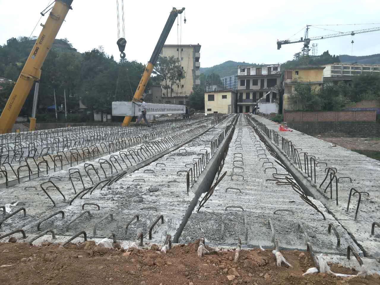 8月17日上午,在建設(shè)、監(jiān)理、施工等相關(guān)單位的精心組織下,11時8分,順利完成第一片預(yù)應(yīng)力空心板梁。經(jīng)過項(xiàng)目部全體員工加班加點(diǎn),歷時兩天,于19日上午7時順利完成了36片預(yù)應(yīng)力空心板梁全部吊裝工作。