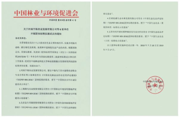 泓盛農(nóng)林公司被授予“中國(guó)生態(tài)良品(景觀園林類)標(biāo)準(zhǔn)化示范基地”稱號(hào)