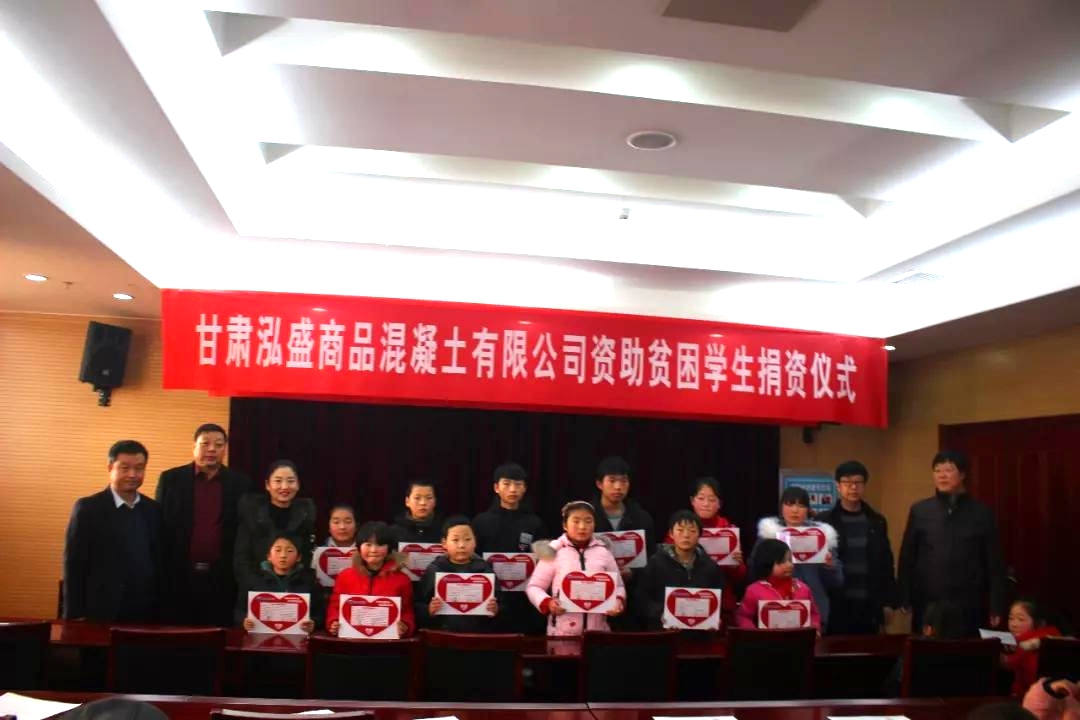 1月11日下午,甘肅泓盛商品混凝土有限公司資助貧困學(xué)生捐資儀式在徽縣政府綜合樓20樓2號(hào)會(huì)議室隆重舉行。縣教育局副局長(zhǎng)黃潤(rùn)珍、團(tuán)縣委副書(shū)記李姣、縣學(xué)生資助中心主任張?zhí)嵭、公司領(lǐng)導(dǎo)張志強(qiáng)、尹向宏出席儀式,受助學(xué)生、學(xué)生家長(zhǎng)以及有關(guān)單位負(fù)責(zé)人共計(jì)80余人參加儀式。