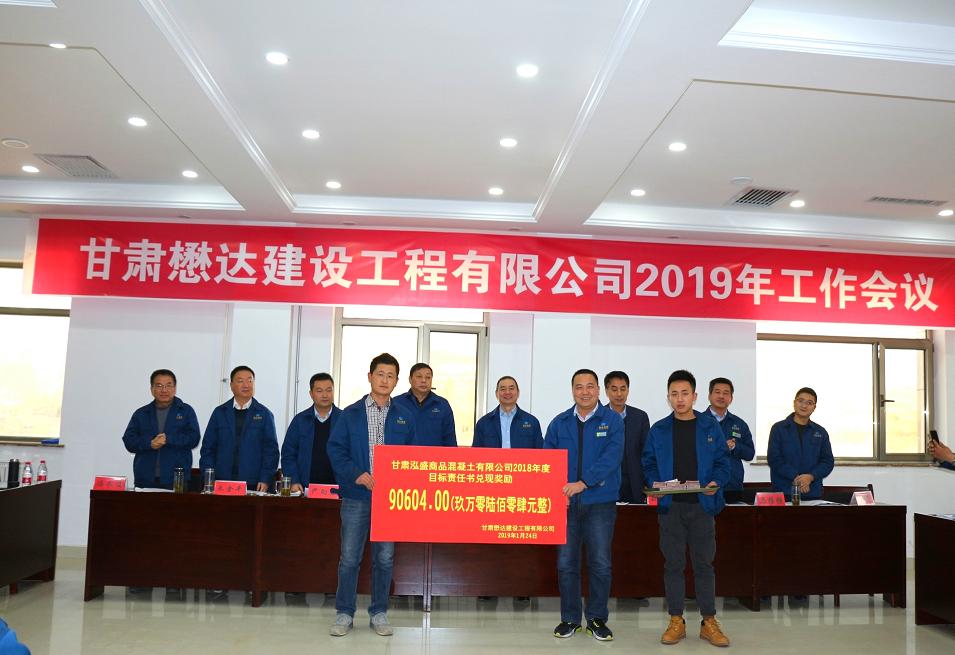 會議還對雁灘·金徽園商住小區(qū)、金徽酒隴南銷售公司員工公寓樓建設(shè)項目榮獲“2018年甘肅省建筑業(yè)文明工地”榮譽、泓盛商品混凝土有限公司超額完成外銷任務(wù)、泓盛房地產(chǎn)開發(fā)有限公司圓滿完成售房收款任務(wù)兌現(xiàn)獎勵。公司總經(jīng)理封曉成與泓盛商品混凝土有限公司、泓盛房地產(chǎn)開發(fā)有限公司負(fù)責(zé)人簽訂了2019年度目標(biāo)責(zé)任書。