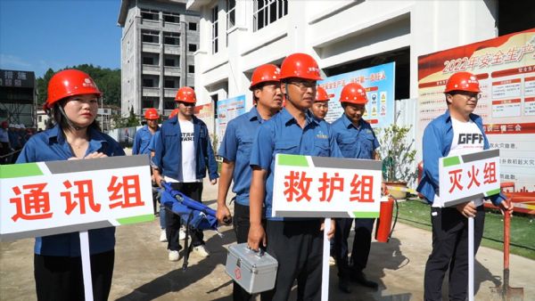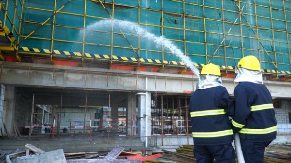 模擬建筑工地發(fā)生火災(zāi)和發(fā)生工人觸電事故,施工現(xiàn)場負責(zé)人馬上報警,通訊組撥打“119”電話,說明地點,請求消防隊到達現(xiàn)場進行滅火處置,同時撥打“120”電話前來救護。立即向公司相關(guān)負責(zé)人匯報,公司負責(zé)人立即向上級主管部門報告事故發(fā)生情況。滅火組、物資供應(yīng)組、救護組、疏散組立即行動起來,有序開展滅火,現(xiàn)場組織自救和人員疏散工作,在自救的同時縣消防大隊救援車輛趕赴現(xiàn)場將火撲滅,縣人民醫(yī)院救護車及救援人員也趕赴現(xiàn)場,將受傷人員檢查處理后,送縣醫(yī)院急救中心進行救治。參演各小組按照指令有序開展救援,配合緊密,達到了“練”為“戰(zhàn)”的目的。