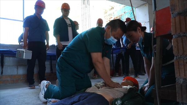 為應(yīng)對建筑施工地現(xiàn)場突發(fā)安全事故,進一步提高公司處理建筑工地安全生產(chǎn)事故的能力,2022年6月30日由徽縣住房和城鄉(xiāng)建設(shè)局主辦,甘肅懋達建設(shè)工程有限公司、甘肅十建建設(shè)工程有限公司承辦的“徽縣2022年建筑工地施工現(xiàn)場應(yīng)急預(yù)案演練”活動在徽縣膠州中學(xué)項目一期一標(biāo)段舉行?h住建局李亞軍副局長、縣防汛抗旱指揮隊王亞輝隊長、質(zhì)安站荔秀平站長及懋達實業(yè)集團副總經(jīng)理尹向宏、總工程師朱金平等相關(guān)領(lǐng)導(dǎo)出席并參加了本次演練活動。