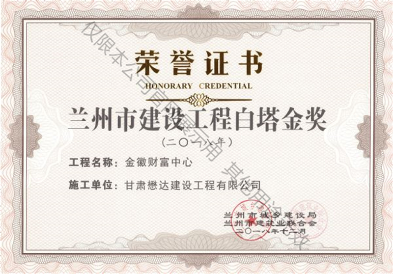 金徽財富中心--2018年蘭州市建設工程白塔金獎