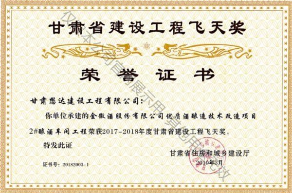 金徽酒技改項目2#釀酒車間工程---甘肅省建設工程飛天獎