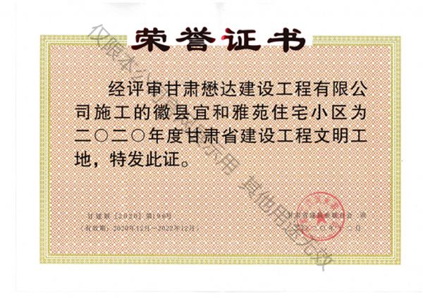 徽縣宜和雅苑住宅小區(qū)-2020年省級(jí)文明工地