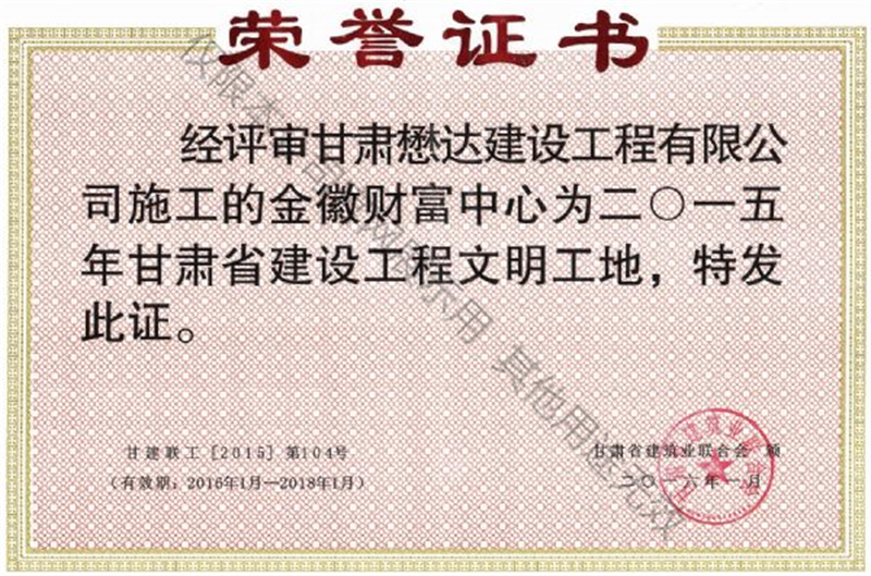 金徽財(cái)富中心-2015年省級(jí)文明工地
