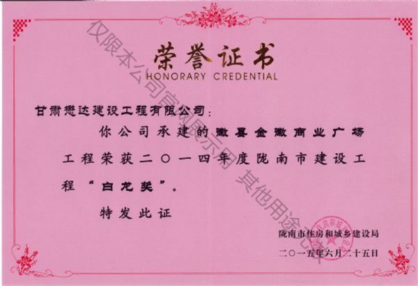 金徽商業(yè)廣場(chǎng)-隴南市建設(shè)工程白龍獎(jiǎng)