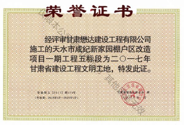 天水市成紀新家園棚戶區(qū)改造項目一期工程五標段--2017年度甘肅省建設工程文明工地