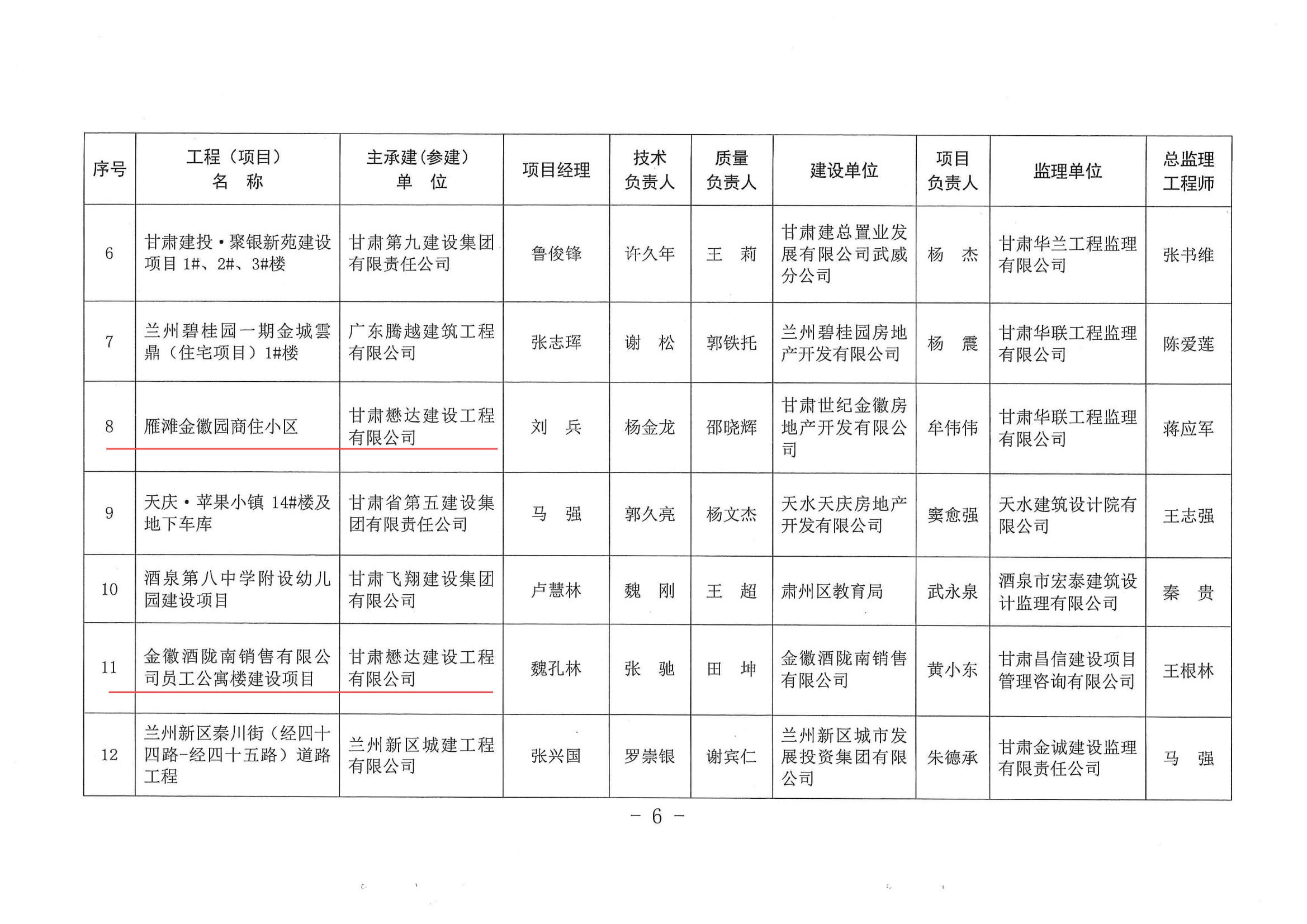 近日,2023年度甘肅省建設(shè)工程“飛天獎(jiǎng)”入選工程名單揭曉。由甘肅懋達(dá)建設(shè)工程有限公司承建施工的雁灘金徽?qǐng)@商住小區(qū)和金徽酒隴南銷(xiāo)售有限公司員工公寓樓建設(shè)項(xiàng)目榮獲甘肅省建設(shè)工程“飛天獎(jiǎng)”。